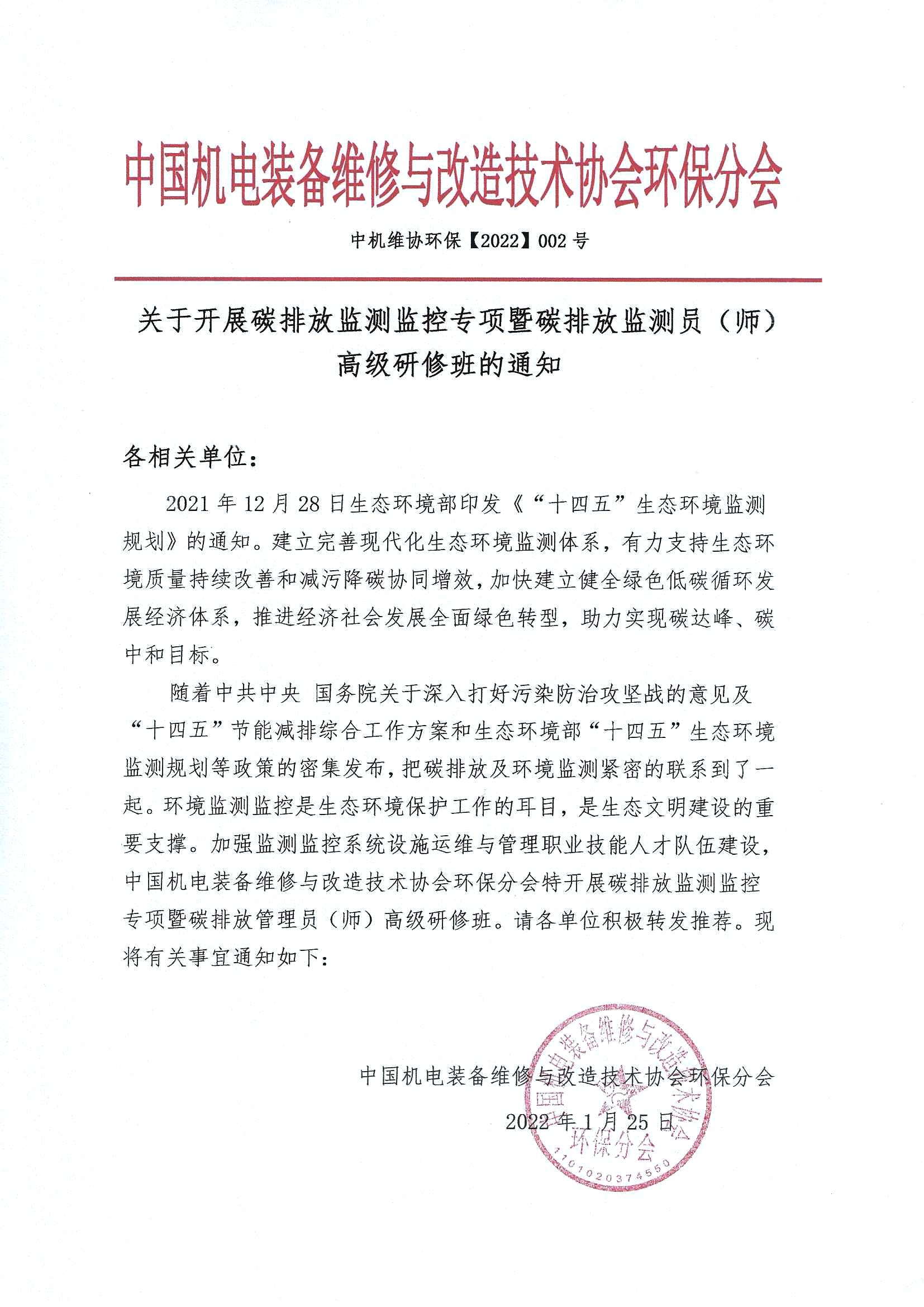 關(guān)于開展碳排放監(jiān)測監(jiān)控專項(xiàng)暨碳排放監(jiān)測員(師)高級研修班的通知!