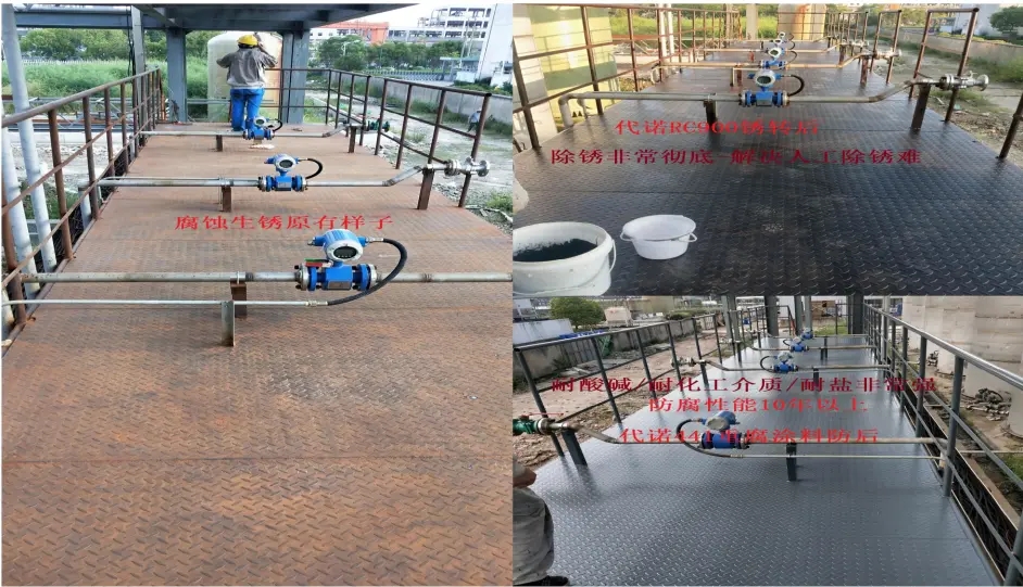 DN 441 是一種不透水的高固含材料,不像普通的油漆靠溶劑的揮發(fā)實現(xiàn)成膜, 所以其防護性能遠遠超過環(huán)氧類材料。其固化過程會產(chǎn)生膨脹,形成迷宮式的通道,防止水汽和有害液體的滲透。DN 441 膨脹后體積會增加 40- 50左右,干膜厚度會比濕膜厚度增加近一倍,對于有漆膜厚度要求的涂裝,一遍代諾 441 涂裝就可以達到傳統(tǒng)油漆兩遍的涂裝厚度,節(jié)省人工費用。所以DN 441 材料被廣泛應(yīng)用于石油裝備、海洋平臺、化工罐體、管道、污水池、鋼構(gòu)等制造和修補領(lǐng)域。